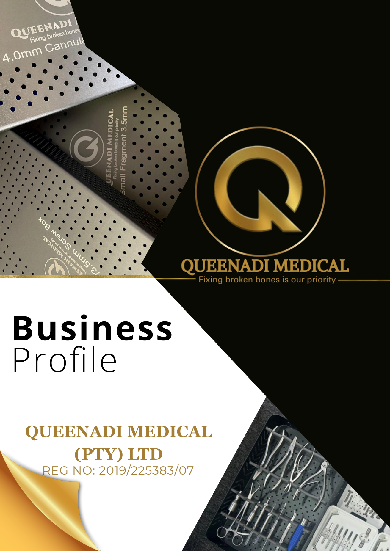 Queenadi Medical (Pty) Ltd was established in 2019 and is owned by Ms. Emily Masango, a passionate and experienced professional in orthopedic trauma implants. With our motto "Fixing broken bones is our priority," we import and supply high-quality orthopedic implants to help address the escalating burden of trauma cases in South African healthcare.